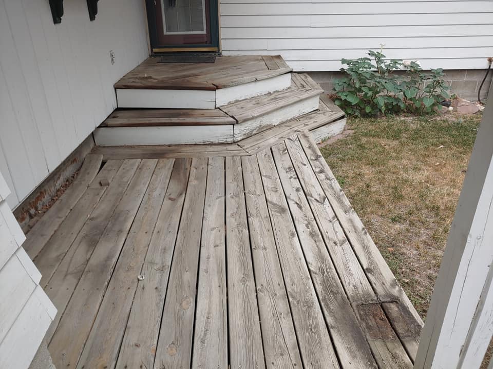 Wood deck stairs, particularly those exposed to harsh weather and moisture, are often the first part of a deck to rot, splinter, and fail. This project addressed a severe case where the existing pressure-treated wood stairs were structurally unstable and constantly slippery, creating an unsafe transition from the door to the yard.