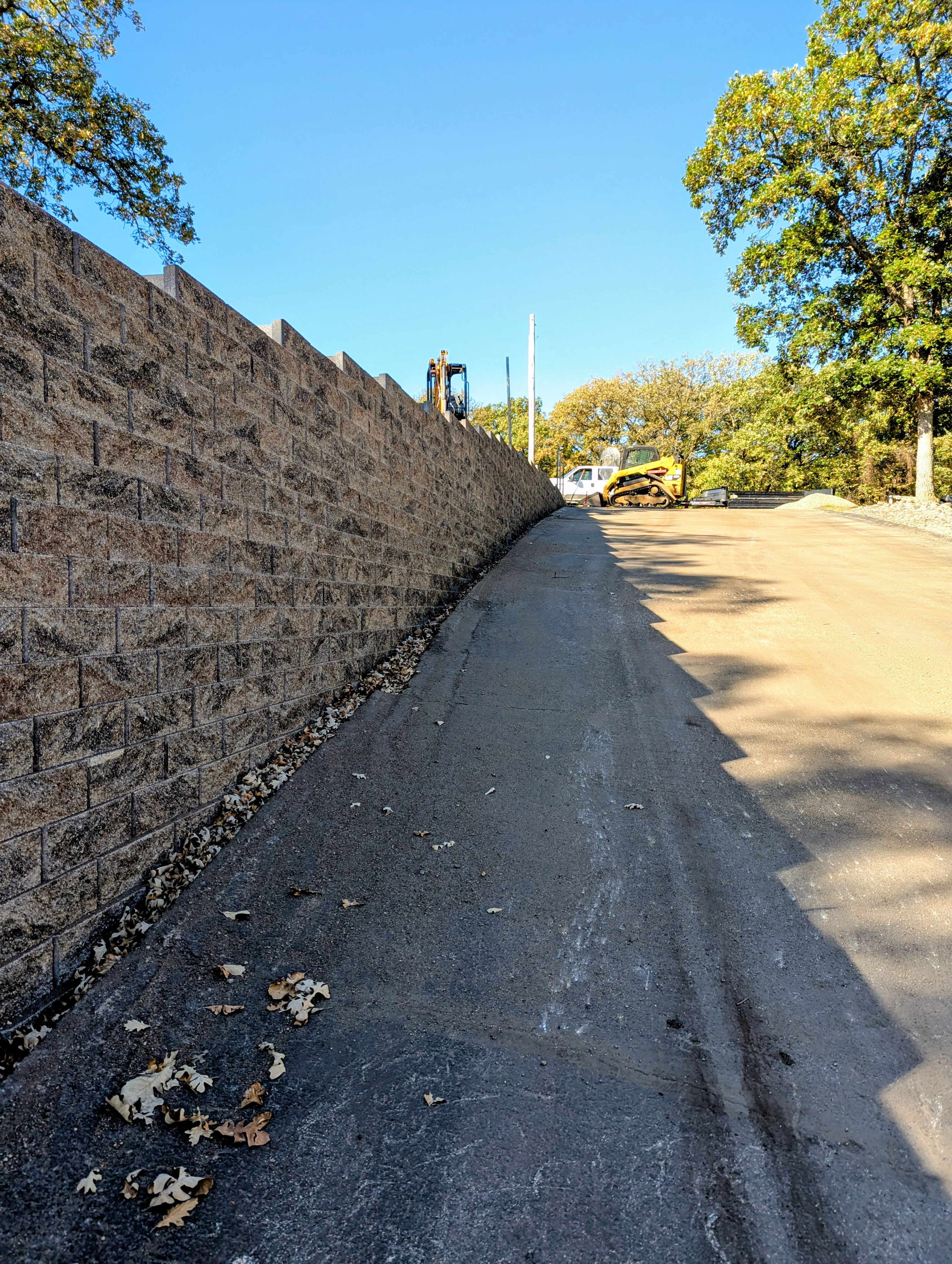 This wall was failing and threatening the safety of the driveway above it. We demolished the rotting wood structure and installed a modern, engineered concrete block retaining wall, stabilizing the slope and providing decades of service.